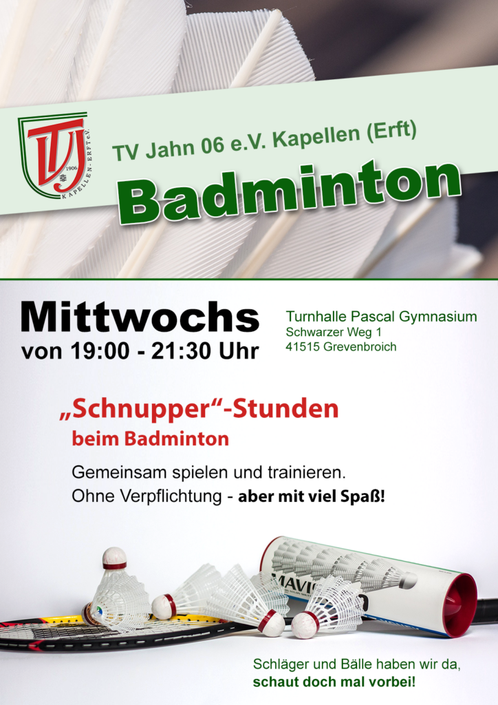 Badminton ist ein schneller, dynamischer Rückschlagsport, der Reaktionsvermögen, Ausdauer und Präzision verbindet. Beim TV Jahn spielen Anfänger und Fortgeschrittene gemeinsam – mit viel Spaß, Fairness und Bewegung.